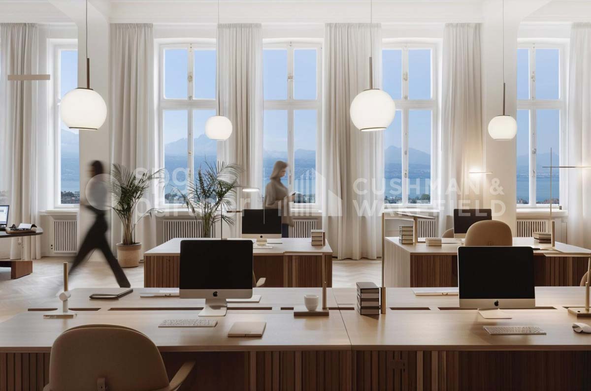 - Bright open-plan offices with high ceilings